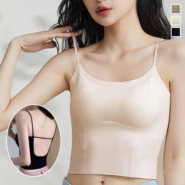 商品名:背中あき キャミソール ショート丈 カップ付 キャミタンクトップ パット付 バックオープン バッククロス インナー 見せブラトップ ブラカバー(メール便送料無料)