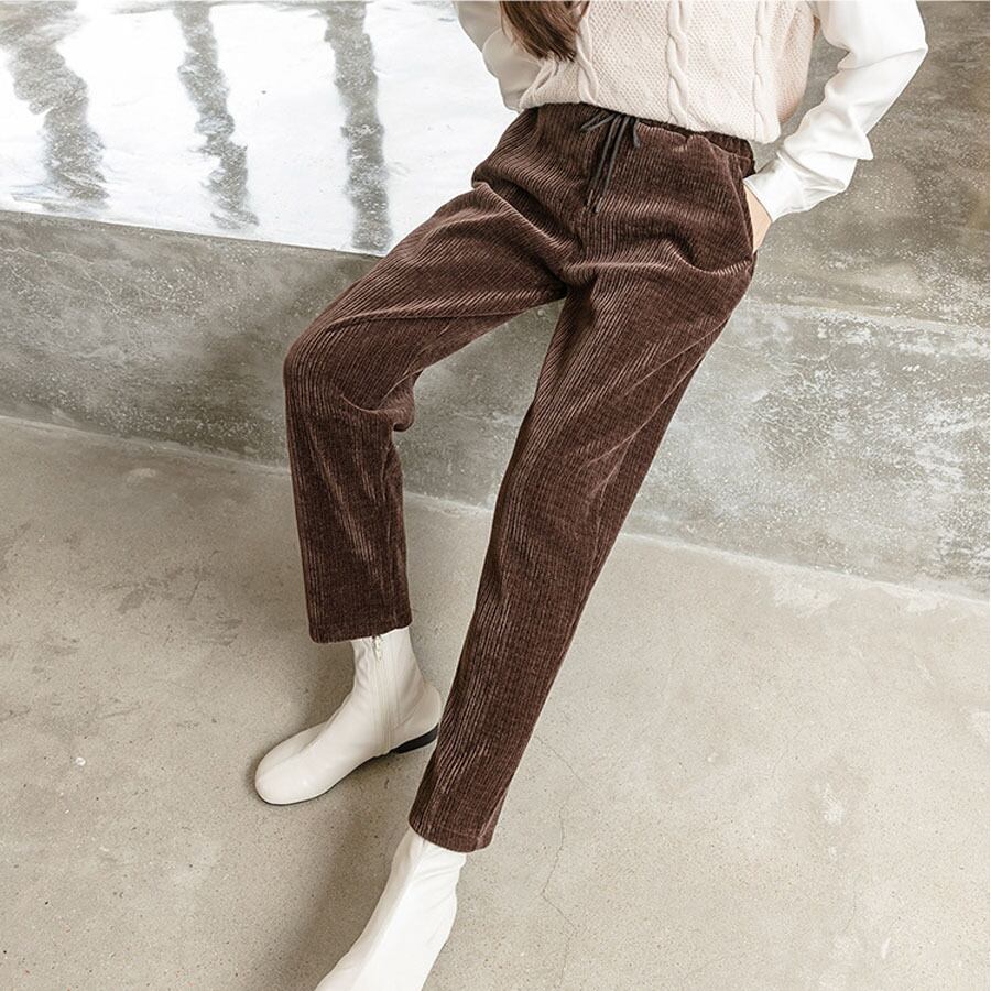 パンツ コーデュロイ ウエストゴム ロングパンツ 無地 ゆったり ポケット ボトムス コーデュロイパンツ