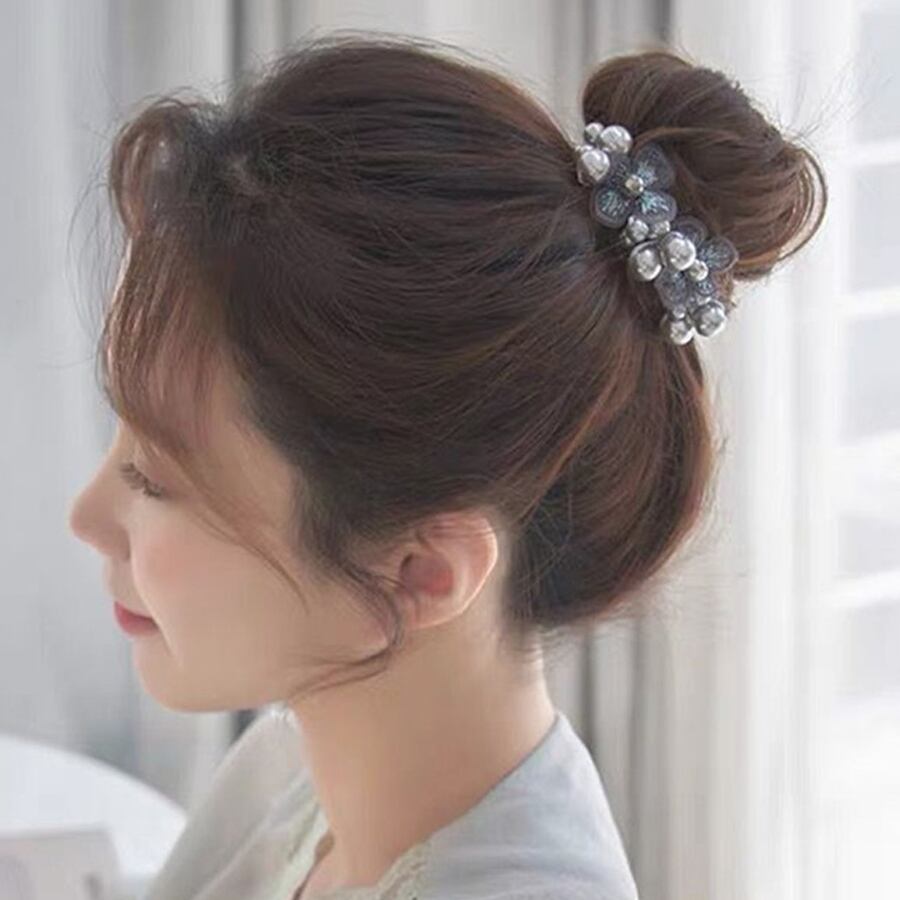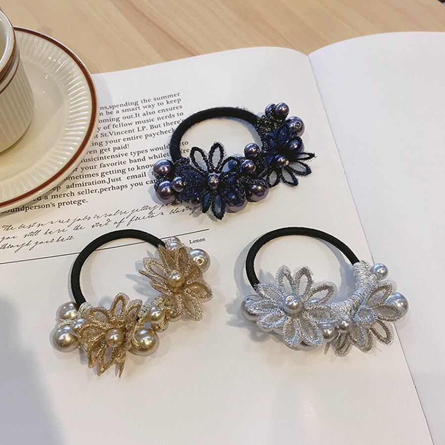 ヘアゴム はな パール おしゃれ ヘアアクセサリー リボン結び シンプル 髪留め