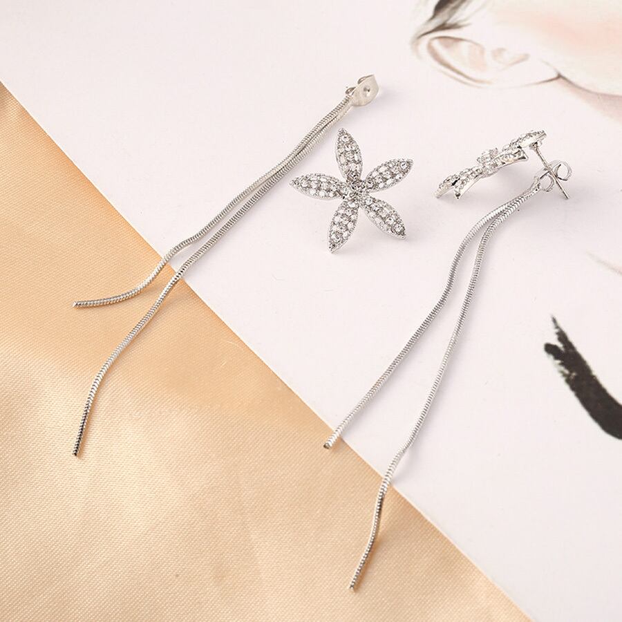 ピアス レディース 揺れる ロングピアス 花 2way イヤリング バックキャッチ 卒園 卒業 シルバー