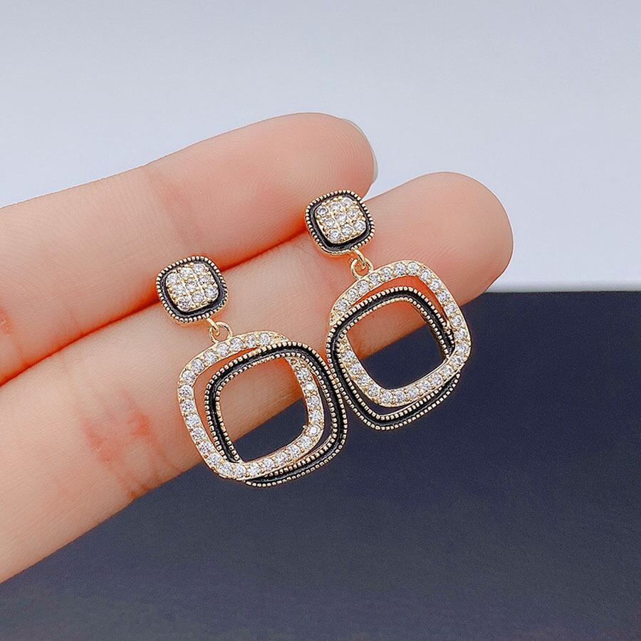ピアス レディース 四角 揺れる キラキラ かわいい 3連ピアス 人気アクセサリー イヤリング 二次会 結婚式