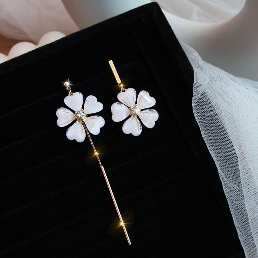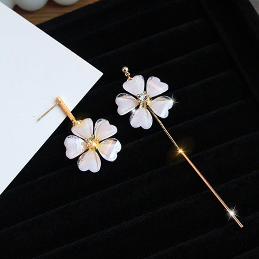 ピアス レディース 揺れる ロングピアス 大ぶり モチーフピアス 花 可愛い イヤリング 左右非対称 人気アクセサリー