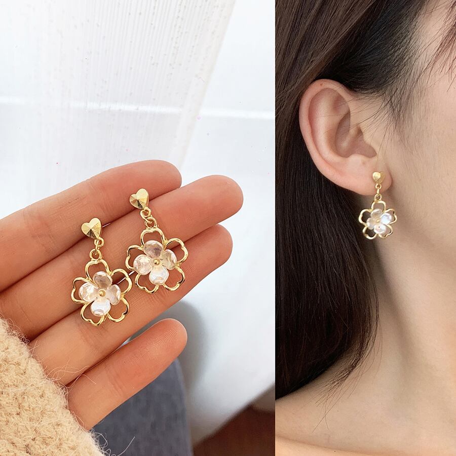 大ぶり花デザインピアス。