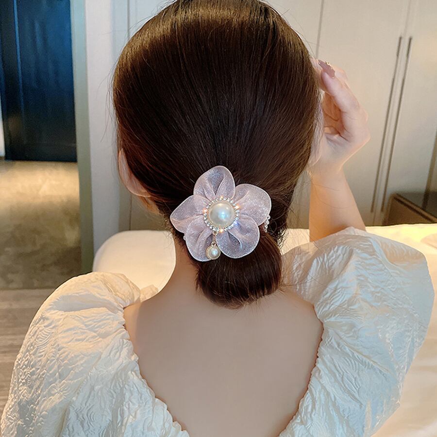 ヘアゴム はな パール おしゃれ ブレスレット ヘア留め ヘアアクセサリー 髪飾り 上品 パーティー飾り