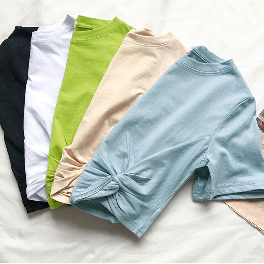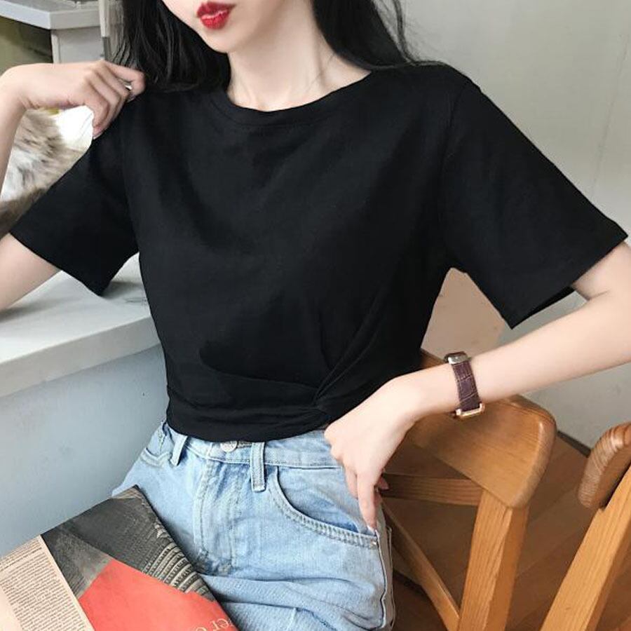 Tシャツ レディース 半袖 へそ出し ショート丈 tシャツ トップス 無地 綿 カットソー 薄手 黒 白