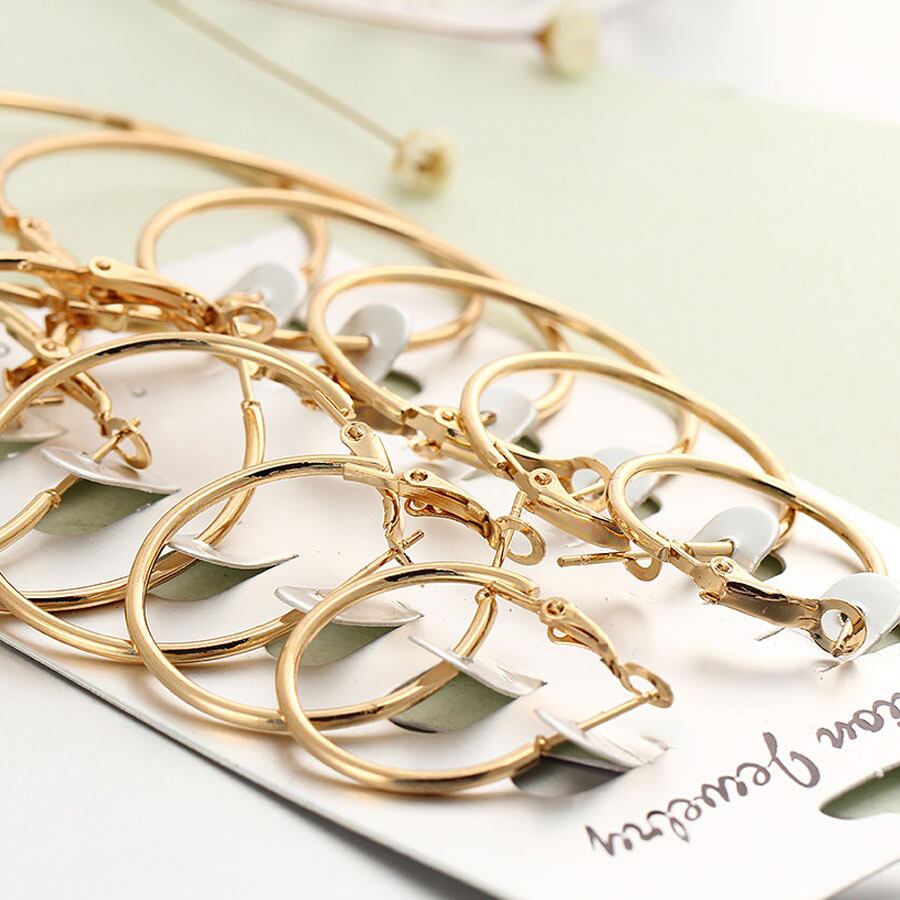シンプルなデザインが大人女性らしい上品でシンプル フープピアス 6点セット。