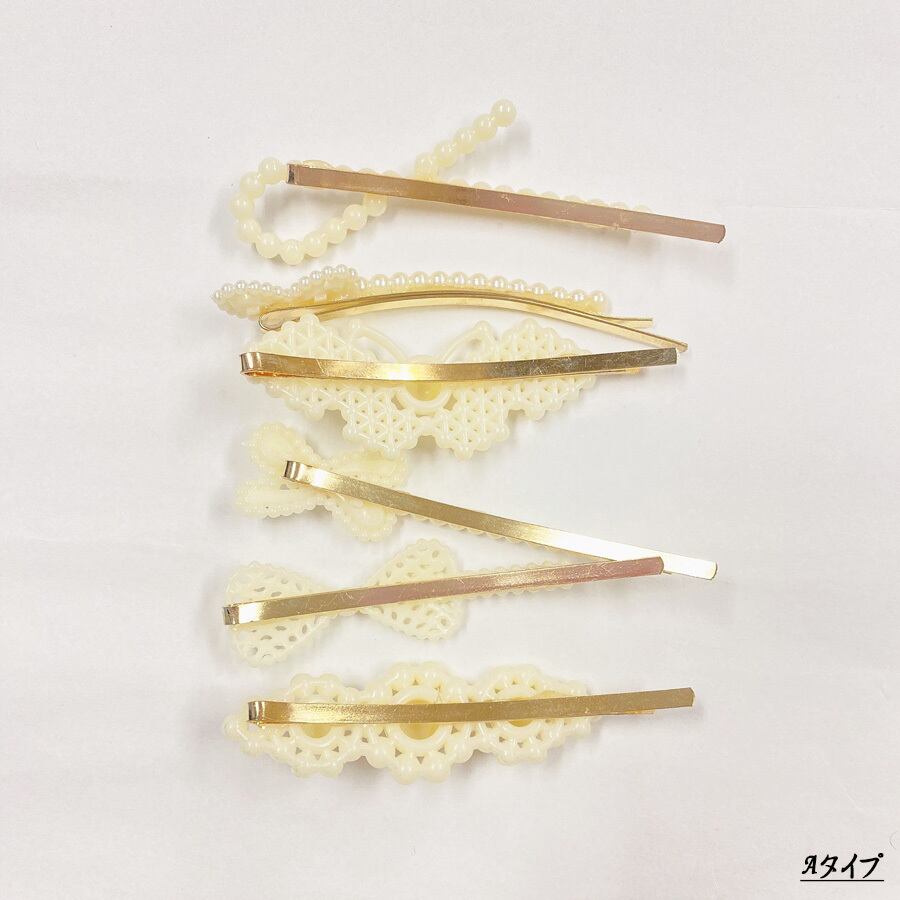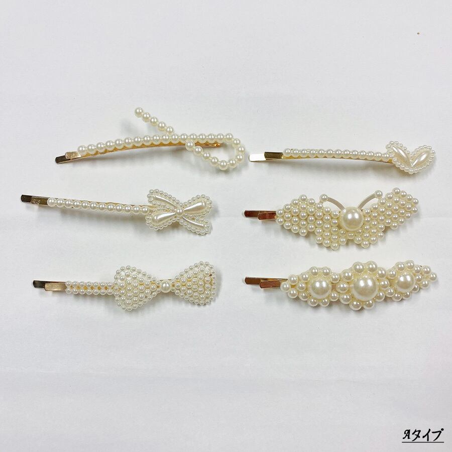 いろいろなデザインのパールヘアピン6本セット。
