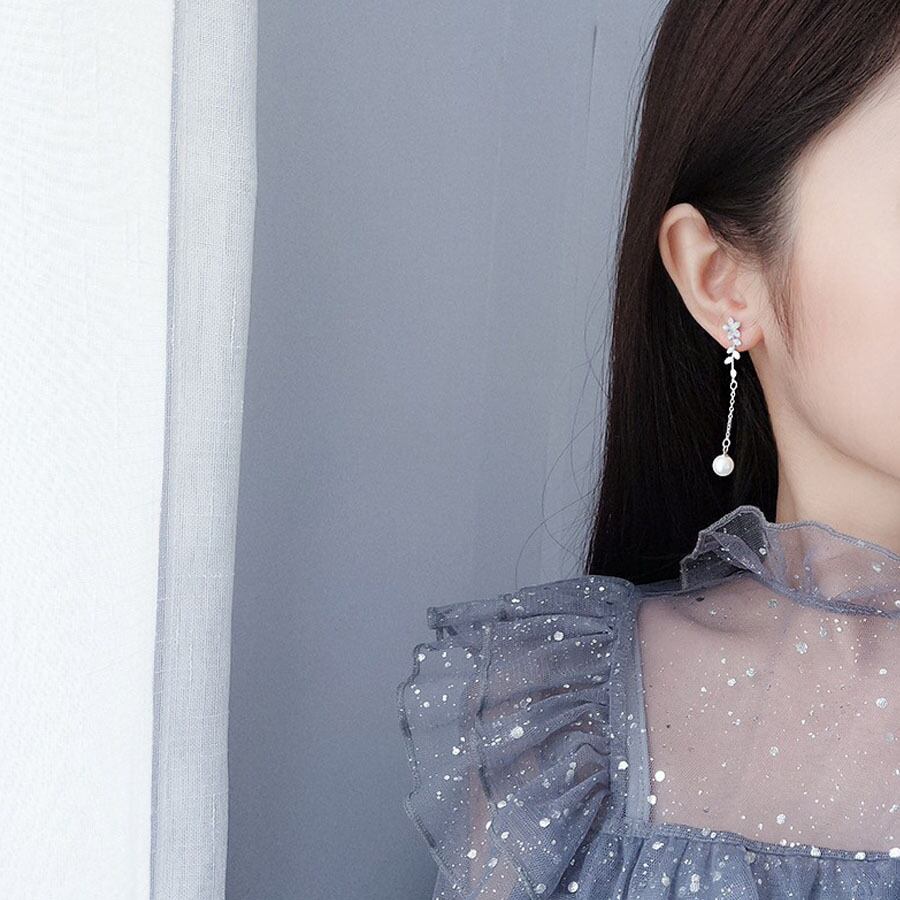 フェミニンで華やかな揺れるロングパールピアス。