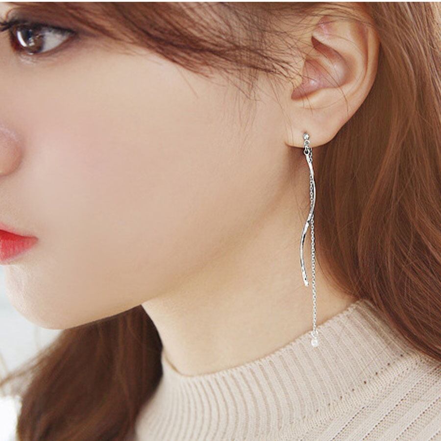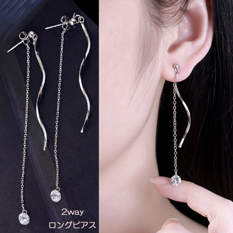 ピアス ロングピアス 2way 揺れる キラキラ アクセサリー 大人 お洒落 輝く ネークチェーン 小顔効果