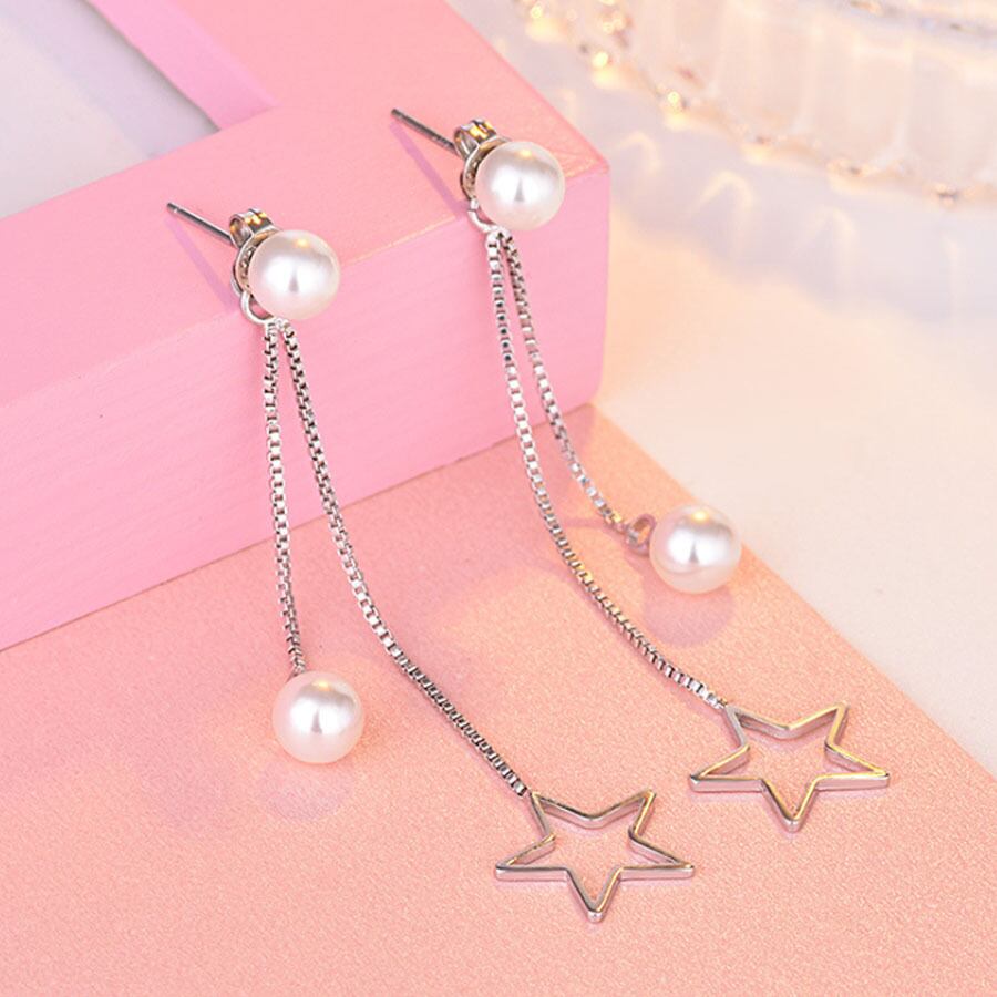 ピアス パール ロング 揺れる 大ぶりイヤリング 星 シンプル かわいい 2way ロングピアス 人気アクセサリー