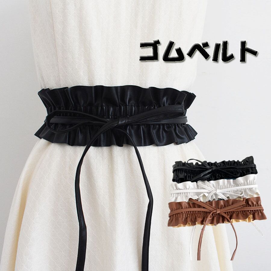 ゴムベルト レディース 幅広 太ベルトバックル付 細見え ラクチン おしゃれ