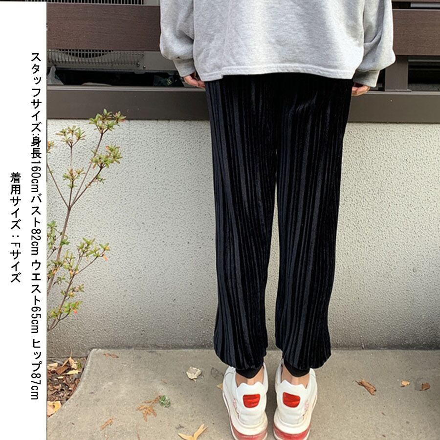 ジョガーパンツ ベロア ロング丈 バギーパンツ カジュアルパンツ 光沢感 無地 ゆるい 体型カバー 脚長